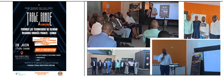 📅 28 juin 2025: organisation d’une table ronde en France en présence du ministre de l’Enseignement Technique et Professionnel de la République du Congo, autour des enjeux de la formation technique et de l’employabilité des jeunes.